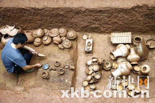 先烈中路市委党校内一建造工地发现一汉代古墓,出土了大批陶器,青铜器等。+ S: C' M. V0 l9 @' V9 p